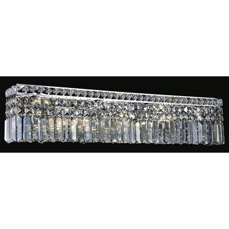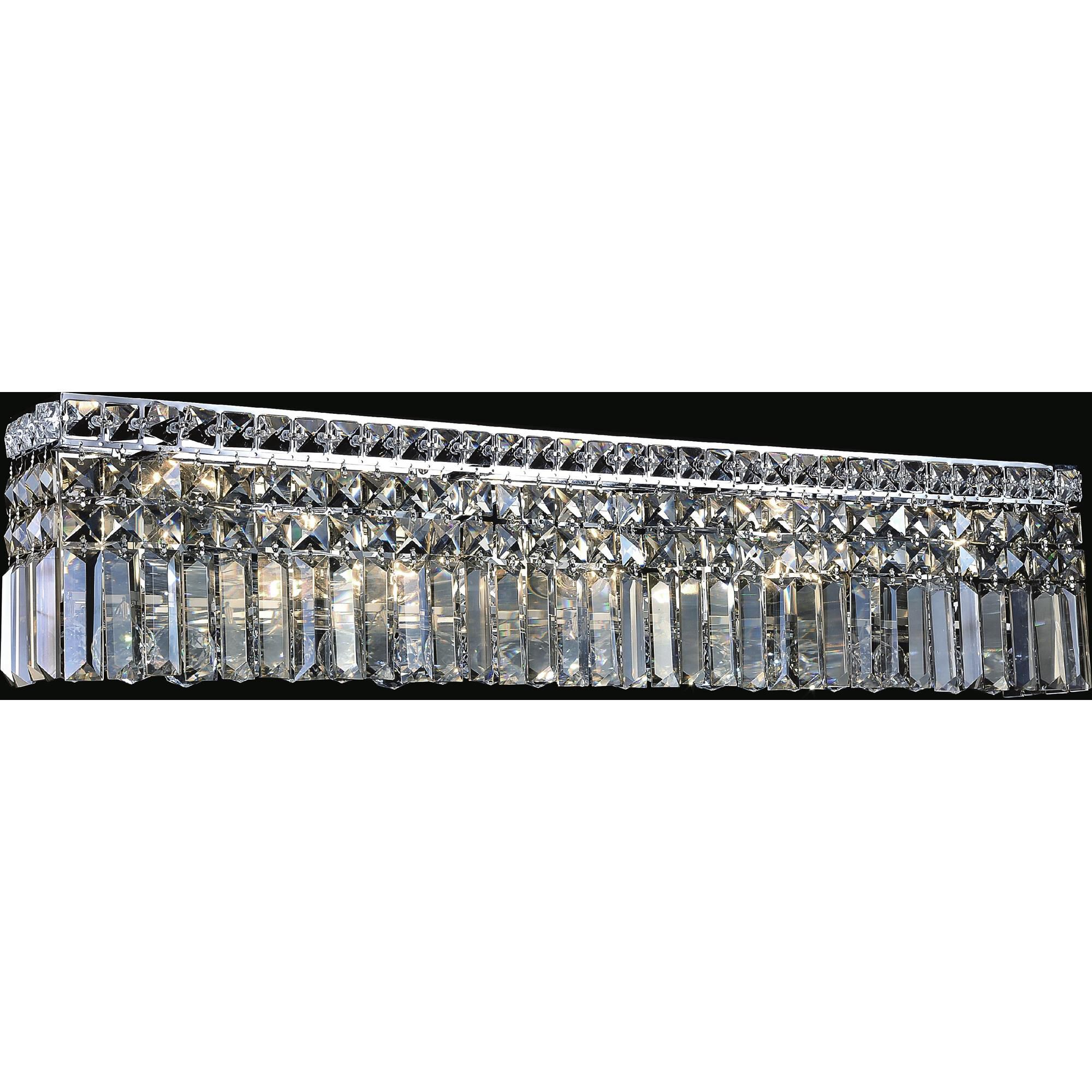 A 30 inch long vanity light, the Colosseum 7 Light Wall Sconce has enough radiance to make a cramped space appear bigger and more luxurious. This vanity light requires seven candelabra bulbs and a neat and clean wall space where it can shine without competition. Use this crystal covered light source to instantly create a high end hotel bathroom right in your own humble abode.