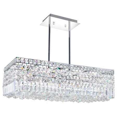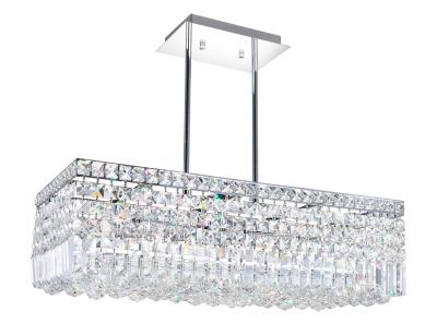 - Got a wide open space? Partition each room with statement lighting like this Colosseum 8 Light Chandelier that's perfect for the dining room or above a kitchen island. This down chandelier measures 26 inches long and has a rectangular silhouette. Concealed by glistening clear crystals is a candelabra frame holding eight bulbs. This large glam light delivers even illumination that's also warm and flattering.