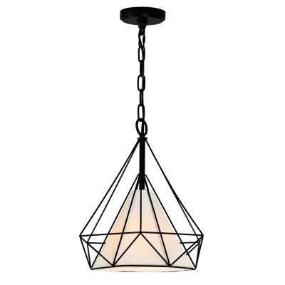 Here is a down pendant that is way different than your typical geometric metal pendant. The Diamond 15 inch 1 Light Chandelier features a diamond silhouette with a layered and geometric twist. A slim black metal frame reminiscent of the facets of a diamond encases the inner shade which conceals a single bulb. The diamond pendant suspends from an adjustable black chain that you can adjust to your desired height.Lighting is jewelry for the home, and there is the perfect piece for every room. This fixture is done in a beautiful black finish which could be the missing piece to lighten up and fall in love with your space all over again.<br/><br/>Features :<br/><br/>- Feel confident with your purchase and rest assured. This fixture comes with a one year warranty against manufacturers defects to give you piece of mind that your product will be in perfect condition.<br/>- Dimensions: H 16" x W 15" x L 15"<br/>- Black Finish - E26 Bulb Not Included - Indoor (Dry Location)<br/>- cETLus Approved<br/>- Includes Assembly Instructions and Hardware<br/>- Compatible With Standard Low Voltage Dimmer.<br/><br/>Specifications :<br/><br/>- Number of Lights : 1<br/>- Voltage : 120v<br/>- Bulb Type : E26<br/>- Warranty Description : One year warranty against manufacturers defect<br/>- Installation Type : Hardwired<br/>- Material : Metal.