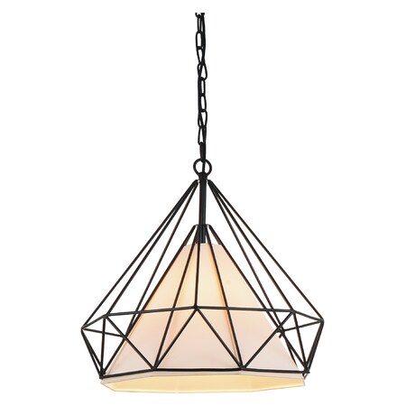 The Diamond 18 inch 1 Light Chandelier will suit most interior design applications. Use as dining room down pendant light, a unique source of light in a hallway, lighting plus visual interest for an all-white kitchen, or as ambient light provider for the home office. The refined silhouette and edgy appeal of this light fixture can give any space an architectural yet casual feel.Lighting is jewelry for the home, and there is the perfect piece for every room. This fixture is done in a beautiful black finish which could be the missing piece to lighten up and fall in love with your space all over again.<br/><br/>Features :<br/><br/>- Feel confident with your purchase and rest assured. This fixture comes with a one year warranty against manufacturers defects to give you peace of mind that your product will be in perfect condition.<br/>- Dimensions: H 16" x W 18" x L 18"<br/>- Black Finish - E26 Bulb Not Included - Indoor (Dry Location)<br/>- cETLus Approved<br/>- Includes Assembly Instructions and Hardware<br/>- Compatible With Standard Low Voltage Dimmer.<br/><br/>Specifications :<br/><br/>- Number of Lights : 1<br/>- Voltage : 120v<br/>- Bulb Type : E26<br/>- Warranty Description : One year warranty against manufacturers defect<br/>- Installation Type : Hardwired<br/>- Material : Metal.