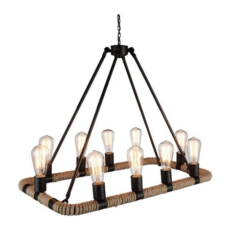 - The oversized Ganges 10 Light Chandelier displays a handsome mixed material look. The rectangular frame with rounded edges is covered in hemp rope and is anchored by four slim rods. This rustic industrial light source goes well in a dining room, kitchen, entertainment room, or man cave.