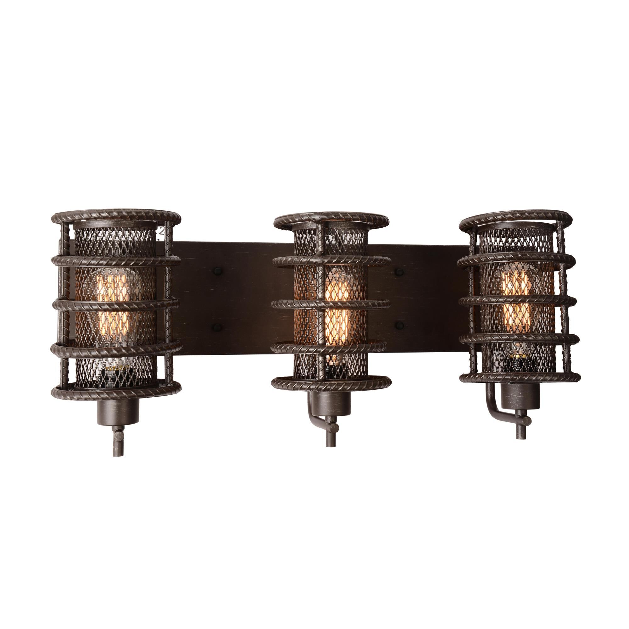 - Love modern farmhouse aesthetics? Then you'll love the Darya 3 Light Wall Sconce. This brown light fixture is designed with three mesh panel shades encased in steel rod cages. Imagine this paired with a steel framed shower enclosure or a barn door style full length mirror. Indeed, this light source can provide your master bath or halfway bath with warm and inviting vibe along with a rustic edge.