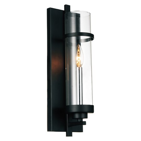 Looking elegantly simple, the Sierra 1 Light Wall Sconce displays a minimalist profile but actually has a maximalist impact. This 5 inch by 17 inch wall light can spruce up a dreary room without taking floor space. It can upgrade the ambiance in the entryway, living room, dining room, or bedroom and it can provide a nice glow to a powder room. The clear glass and black metal frame design of this contemporary candelabra wall sconce will also fit a variety of aesthetic environments. Lighting is jewelry for the home, and there is the perfect piece for every room. This fixture is done in a beautiful black finish which could be the missing piece to lighten up and fall in love with your space all over again.<br/><br/>Features :<br/><br/>- Feel confident with your purchase and rest assured. This fixture comes with a one year warranty against manufacturers defects to give you piece of mind that your product will be in perfect condition.<br/>- Dimensions: H 17" x W 5" x L 5"<br/>- Black Finish - E12 Bulb Not Included - Indoor (Dry Location)<br/>- cETLus Approved<br/>- Includes Assembly Instructions and Hardware<br/>- Compatible With Standard Low Voltage Dimmer.<br/><br/>Specifications :<br/><br/>- Number of Lights : 1<br/>- Voltage : 120v<br/>- Bulb Type : E12<br/>- Warranty Description : One year warranty against manufacturers defect<br/>- Installation Type : Hardwired<br/>- Material : Metal.