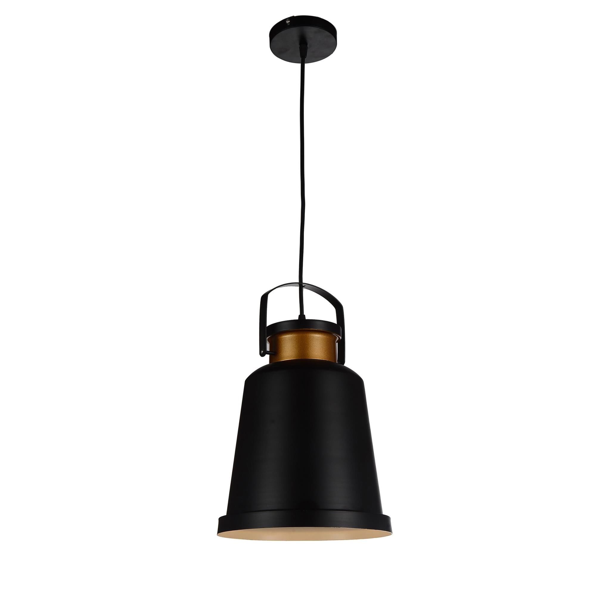 - The Elisa 1 Light Bell Pendant has an irresistible appeal. It features a black finished bell like profile with gold trim. This light fixture's distinct charm can add a hint of glam to your space while doing its job of illuminating a task area. Perfect over your kitchen island, dining table, or pool table, this light source will give any room a nostalgic yet edgy update.