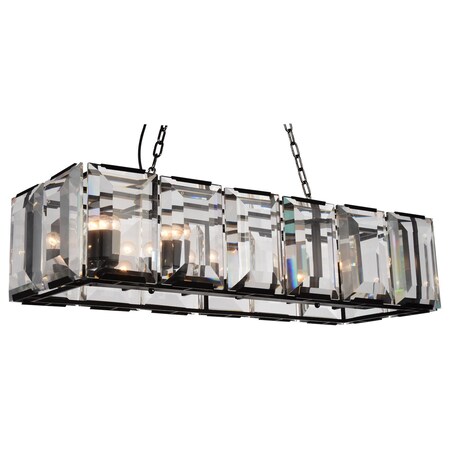 A little bit rugged and a little bit modern, the Jacquet 12 Light Chandelier displays an unpretentious charm that will can make any room look and feel real, inviting, and grounded. This 42 inch oversized chandelier is designed with a rectangular shade fashioned with a metal frame in black and clear crystal glass panes. Twelve candelabra-based bulbs provide illumination that's beautifully diffused by the beveled glass.Lighting is jewelry for the home, and there is the perfect piece for every room. This fixture is done in a beautiful black finish which could be the missing piece to lighten up and fall in love with your space all over again.<br/><br/>Features :<br/><br/>- Feel confident with your purchase and rest assured. This fixture comes with a one year warranty against manufacturers defects to give you piece of mind that your product will be in perfect condition.<br/>- Dimensions: H 11" x W 16" x L 43"<br/>- Black Finish - E12 Bulb Not Included - Indoor (Dry Location)<br/>- cETLus Approved<br/>- Includes Assembly Instructions and Hardware<br/>- Compatible With Standard Low Voltage Dimmer.<br/><br/>Specifications :<br/><br/>- Number of Lights : 12<br/>- Voltage : 120v<br/>- Bulb Type : E12<br/>- Warranty Description : One year warranty against manufacturers defect<br/>- Installation Type : Hardwired<br/>- Material : Metal.