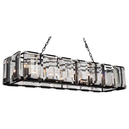 This 55 inch Jacquet 14 Light Chandelier is ready to be a striking focal point in a spacious dining room or a huge kitchen. A rectangular metal frame in black is covered in beveled clear crystal panels that allow light to reflect in many directions. This light source, designed with a beautiful blend of rustic and refined, will finish your space with a polished yet lived inch look.Lighting is jewelry for the home, and there is the perfect piece for every room. This fixture is done in a beautiful black finish which could be the missing piece to lighten up and fall in love with your space all over again.<br/><br/>Features :<br/><br/>- Feel confident with your purchase and rest assured. This fixture comes with a one year warranty against manufacturers defects to give you piece of mind that your product will be in perfect condition.<br/>- Dimensions: H 11" x W 17" x L 55"<br/>- Black Finish - E12 Bulb Not Included - Indoor (Dry Location)<br/>- cETLus Approved<br/>- Includes Assembly Instructions and Hardware<br/>- Compatible With Standard Low Voltage Dimmer.<br/><br/>Specifications :<br/><br/>- Number of Lights : 14<br/>- Voltage : 120v<br/>- Bulb Type : E12<br/>- Warranty Description : One year warranty against manufacturers defect<br/>- Installation Type : Hardwired<br/>- Material : Metal.