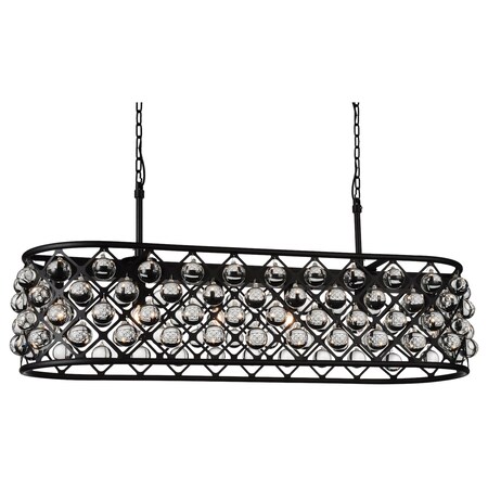 From a creative mind comes the Renous 6 Light Chandelier. This modern light fixture measures 41 inches long and showcases a black metal shade with geometric cut-outs filled with tiny crystal balls. The preciseness of the design and the simple but striking construction will easily give your space a refined look and a modern feel. This is the light source you need when you want your space to look like it's been touched by a designer's magic.Lighting is jewelry for the home, and there is the perfect piece for every room. This fixture is done in a beautiful black finish which could be the missing piece to lighten up and fall in love with your space all over again.<br/><br/>Features :<br/><br/>- Feel confident with your purchase and rest assured. This fixture comes with a one year warranty against manufacturers defects to give you peace of mind that your product will be in perfect condition.<br/>- Dimensions: H 12" x W 13" x L 41"<br/>- Black Finish - E12 Bulb Not Included - Indoor (Dry Location)<br/>- cETLus Approved<br/>- Includes Assembly Instructions and Hardware<br/>- Compatible With Standard Low Voltage Dimmer.<br/><br/>Specifications :<br/><br/>- Number of Lights : 6<br/>- Voltage : 120v<br/>- Bulb Type : E12<br/>- Warranty Description : One year warranty against manufacturers defect<br/>- Installation Type : Hardwired<br/>- Material : Metal.