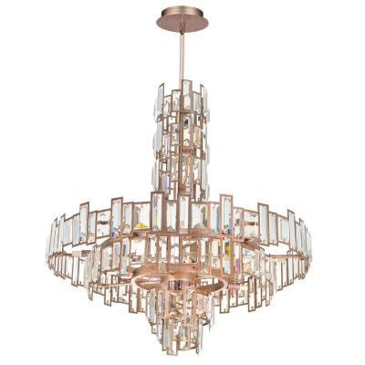 - Introduce the Quida 18 Light Chandelier in your living space and instantly make it feel grand but still homey. This breathtaking down chandelier in champagne finish has a geometric profile with a regal appeal. The clear crystal prisms and its jewelry like brilliance will surely bring a unique personality and a touch of classic elegance to your space.