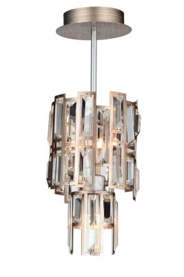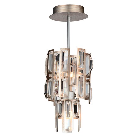 - The Quida 3 Light Pendant is a mini down chandelier that beautifully showcases the merging of romance, drama, and elegance. This 6 inch light fixture is designed with a geometric metal frame in champagne finish embellished with clear crystal prisms. Three bulbs, concealed inside, delivers light that is bright yet soft. This light fixture is perfect for infusing a bit of glam into your space.