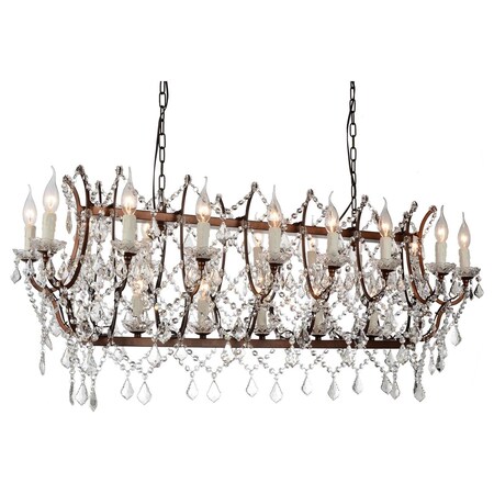 With beauty akin to a glowing goddess, the oversized Phraya 21 Light Up Chandelier shines majestically. One can't help but notice its crystal teardrops cascading from a metal frame in a light brown finish. Twenty-one candelabra bulbs add a layer of elegance to this crystal powerhouse. Lighting is jewelry for the home, and there is the perfect piece for every room. This fixture is done in a beautiful light brown finish which could be the missing piece to lighten up and fall in love with your space all over again.<br/><br/>Features :<br/><br/>- Feel confident with your purchase and rest assured. This fixture comes with a one year warranty against manufacturers defects to give you piece of mind that your product will be in perfect condition.<br/>- Dimensions: H 19" x W 17" x L 49"<br/>- Light Brown Finish - E12 Bulb Not Included - Indoor (Dry Location)<br/>- cETLus Approved<br/>- Includes Assembly Instructions and Hardware<br/>- Compatible With Standard Low Voltage Dimmer.<br/><br/>Specifications :<br/><br/>- Number of Lights : 21<br/>- Voltage : 120v<br/>- Bulb Type : E12<br/>- Warranty Description : One year warranty against manufacturers defect<br/>- Installation Type : Hardwired<br/>- Material : Metal.