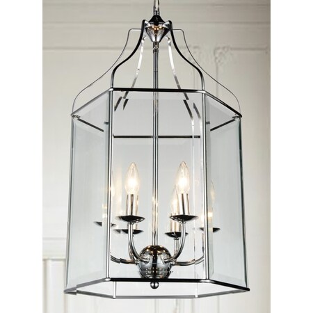 A modern lantern with magical beauty. The Maury 6 Light Chandelier features an elegant candelabra frame in chrome complete with drip plates. It is encased in a lantern-like shade with glass panels and chrome trims. This fixture looks simple yet chic and is perfect for enhancing the mood in a family room or a dining room.Lighting is jewelry for the home, and there is the perfect piece for every room. This fixture is done in a beautiful chrome finish which could be the missing piece to lighten up and fall in love with your space all over again.<br/><br/>Features :<br/><br/>- Feel confident with your purchase and rest assured. This fixture comes with a one year warranty against manufacturers defects to give you peace of mind that your product will be in perfect condition.<br/>- Dimensions: H 28" x W 16" x L 16"<br/>- Chrome Finish - E12 Bulb Not Included - Indoor (Dry Location)<br/>- cETLus Approved<br/>- Includes Assembly Instructions and Hardware<br/>- Compatible With Standard Low Voltage Dimmer.<br/><br/>Specifications :<br/><br/>- Number of Lights : 6<br/>- Voltage : 120v<br/>- Bulb Type : E12<br/>- Warranty Description : One year warranty against manufacturers defect<br/>- Installation Type : Hardwired<br/>- Material : Metal.