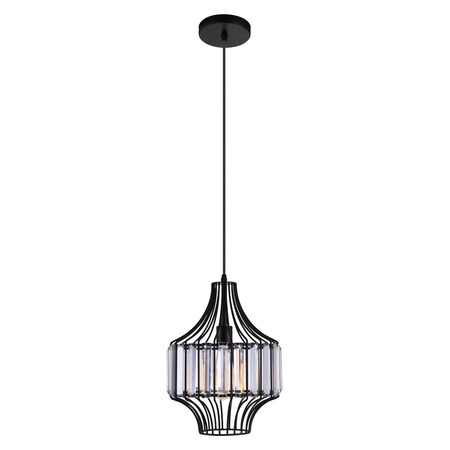 The Alethia 1 Light Geometric Black Pendant measures 10 inches in diameter and 14 inches in height. It features an open metalwork shade in a geometric shape. Adorned with clear crystal bars, this lighting option can bring some coziness into a stark modern space. This light source can be used in the dining room, kitchen, living room, or bathroom. Feel free to bring it into your laundry room, if you wish, for a stylish flair in a gloomy chore room. Lighting is jewelry for the home, and there is the perfect piece for every room. This fixture is done in a beautiful black finish which could be the missing piece to lighten up and fall in love with your space all over again.<br/><br/>Features :<br/><br/>- Feel confident with your purchase and rest assured. This fixture comes with a one year warranty against manufacturers defects to give you piece of mind that your product will be in perfect condition.<br/>- Dimensions: H 14" x W 10" x L 10"<br/>- Black Finish - E26 Bulb Not Included - Indoor (Dry Location)<br/>- cETLus Approved<br/>- Includes Assembly Instructions and Hardware<br/>- Compatible With Standard Low Voltage Dimmer.<br/><br/>Specifications :<br/><br/>- Number of Lights : 1<br/>- Voltage : 120v<br/>- Bulb Type : E26<br/>- Warranty Description : One year warranty against manufacturers defect<br/>- Installation Type : Hardwired<br/>- Material : Metal.