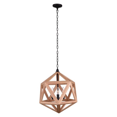 CWI Lighting Lante 3 Light Pendant with Black & Wood Finish Fom