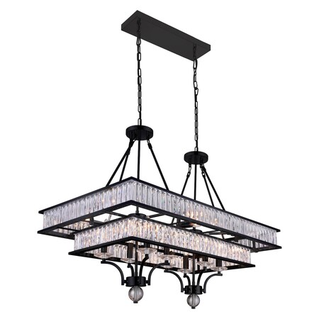 The Shalia 16 Light Chandelier in Black produces a dazzling impact with its sharp edges, dark metal frame, and faceted crystals. It's bound to shape a room's character given its unique and striking form. Choose dimmable bulbs so you can set the atmosphere. This oversized island/pool table lighting is held by a pair of black chains connected to a rectangular canopy,Lighting is jewelry for the home, and there is the perfect piece for every room. This fixture is done in a beautiful black finish which could be the missing piece to lighten up and fall in love with your space all over again.<br/><br/>Features :<br/><br/>- Feel confident with your purchase and rest assured. This fixture comes with a one year warranty against manufacturers defects to give you piece of mind that your product will be in perfect condition.<br/>- Dimensions: H 30" x W 37" x L 37"<br/>- Black Finish - E12 Bulb Not Included - Indoor (Dry Location)<br/>- cETLus Approved<br/>- Includes Assembly Instructions and Hardware<br/>- Compatible With Standard Low Voltage Dimmer.<br/><br/>Specifications :<br/><br/>- Number of Lights : 16<br/>- Voltage : 120v<br/>- Bulb Type : E12<br/>- Warranty Description : One year warranty against manufacturers defect<br/>- Installation Type : Hardwired<br/>- Material : Metal.