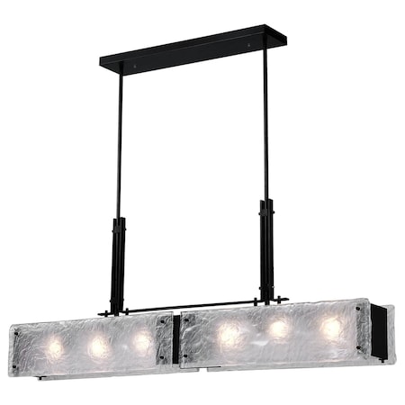 Add sass to a basic room with the Assunta 6 Light Chandelier. This drum shade chandelier with a linear profile measures 45 inches long. Perfect when placed over a dining table or a kitchen island, or even a pool table, this modern light fixture delivers filtered light so you can illuminate a space without glare. The shade is made from a combination of metal and frosted glass. Inside the shade are six G9 bulbs.Lighting is jewelry for the home, and there is the perfect piece for every room. This fixture is done in a beautiful black finish which could be the missing piece to lighten up and fall in love with your space all over again.<br/><br/>Features :<br/><br/>- Feel confident with your purchase and rest assured. This fixture comes with a one year warranty against manufacturers defects to give you peace of mind that your product will be in perfect condition.<br/>- Dimensions: H 18" x W 5" x L 45"<br/>- Black Finish - G9 Bulb Not Included - Indoor (Dry Location)<br/>- cETLus Approved<br/>- Includes Assembly Instructions and Hardware<br/>- Compatible With Standard Low Voltage Dimmer.<br/><br/>Specifications :<br/><br/>- Number of Lights : 6<br/>- Voltage : 120v<br/>- Bulb Type : G9<br/>- Warranty Description : One year warranty against manufacturers defect<br/>- Installation Type : Hardwired<br/>- Material : Metal.