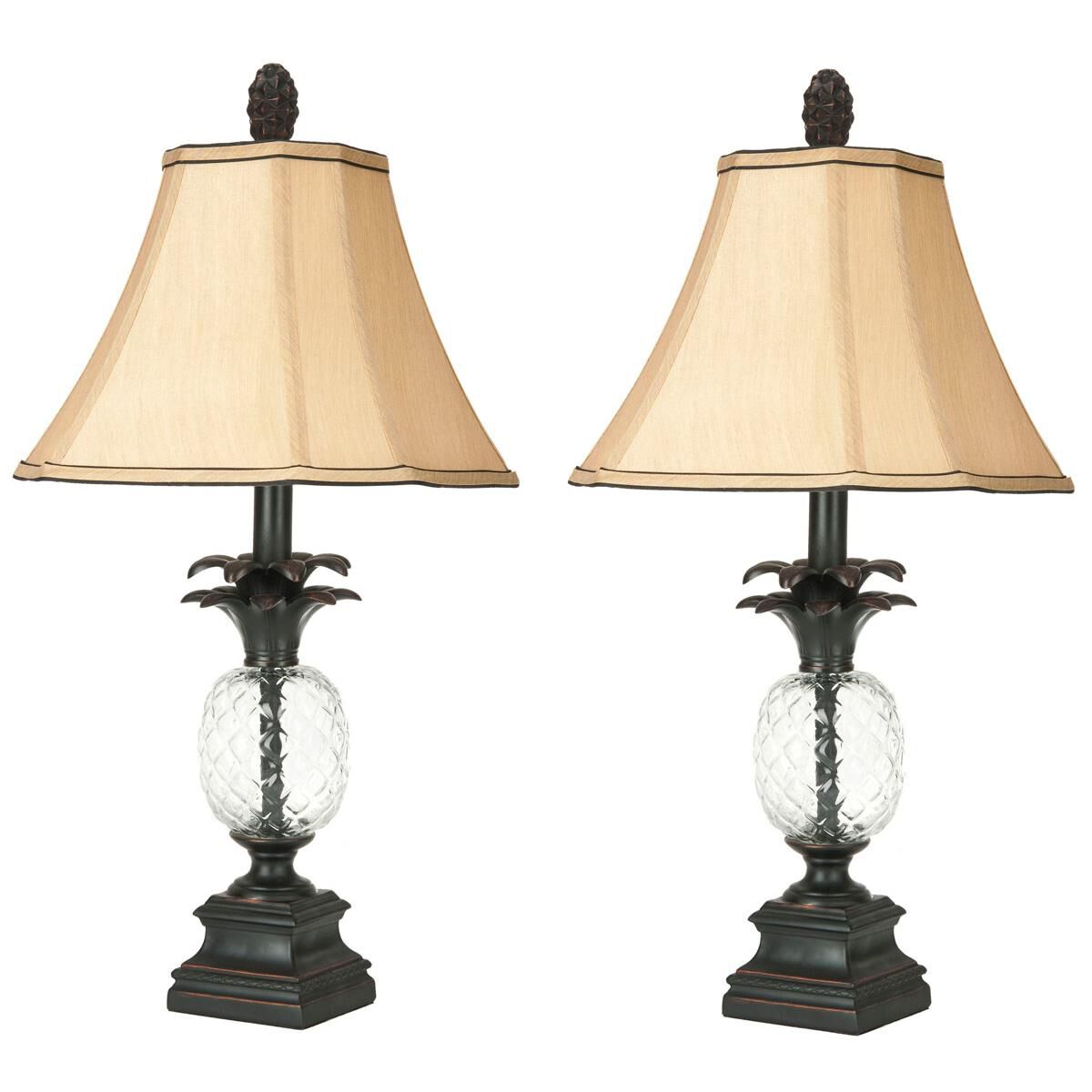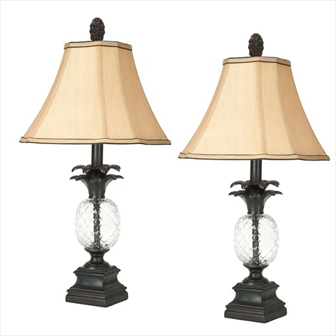 | Feature | The antiqued bronze base of these lamps are each is adorned with an etched glass pineapple, giving these lamps a modern, stylish look |