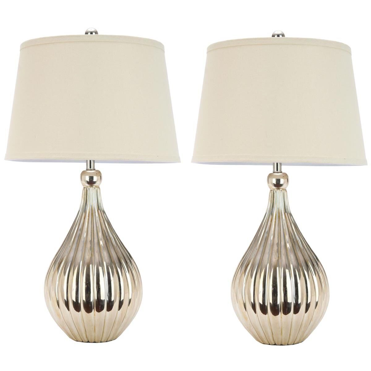 Safavieh Grace Resin Table Lamps and Cream Shade in Champaign Finish (Set of 2)
