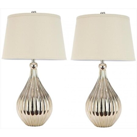 SAFAVIEH Lighting Collection Elli Champagne Gourd 26-inch Bedroom Living Room Home Office Desk Nightstand Table Lamp Set of 2 (LED Bulbs Included)