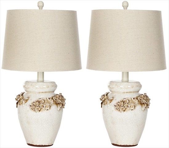 SAFAVIEH Lighting Collection Marquesa Cream Vase 24-inch Bedroom Living Room Home Office Desk Nightstand Table Lamp Set of 2 (LED Bulbs Included)