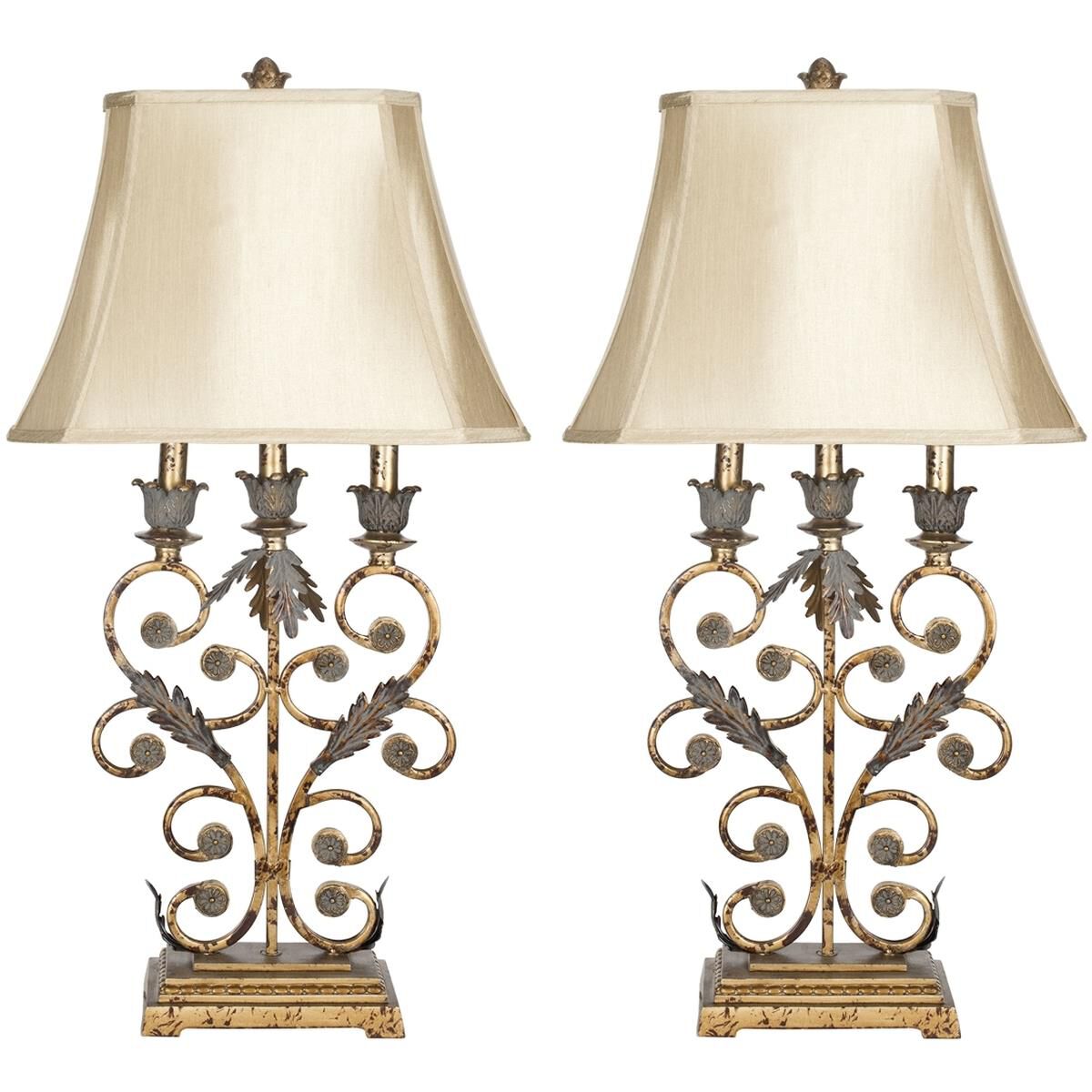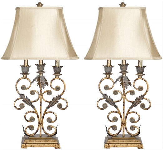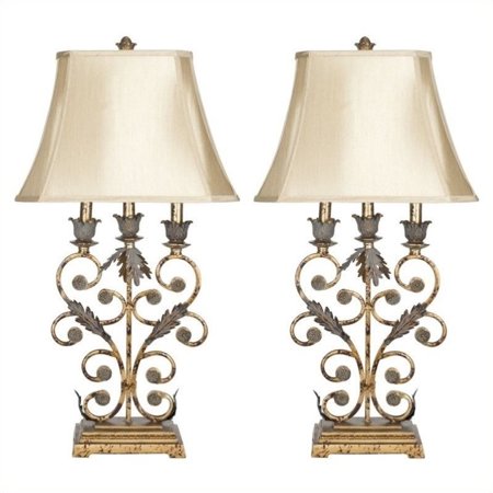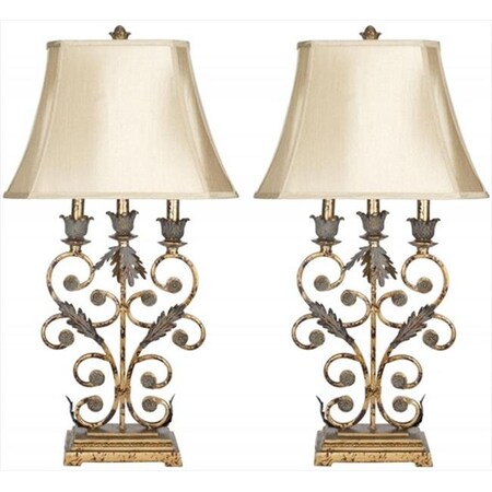 SAFAVIEH Lighting Collection Lucia Rustic Shabby Chic Antique Gold 33-inch Bedroom Living Room Home Office Desk Nightstand Table Lamp Set of 2 (LED Bulbs Included)