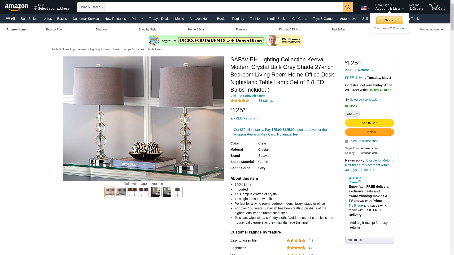 SAFAVIEH Lighting Collection Keeva Modern Crystal Ball/ Grey Shade 27-inch Bedroom Living Room Home Office Desk Nightstand Table Lamp Set of 2 (LED Bulbs Included)