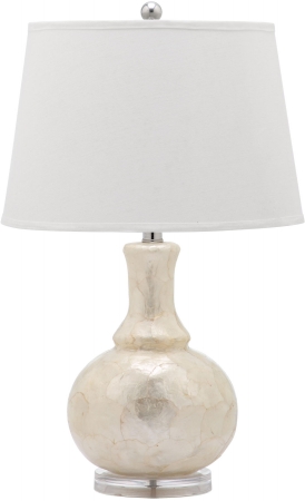 SAFAVIEH Lighting Collection Shelley Coastal White Capiz Shell Gourd 25-inch Bedroom Living Room Home Office Desk Nightstand Table Lamp Set of 2 (LED Bulbs Included)