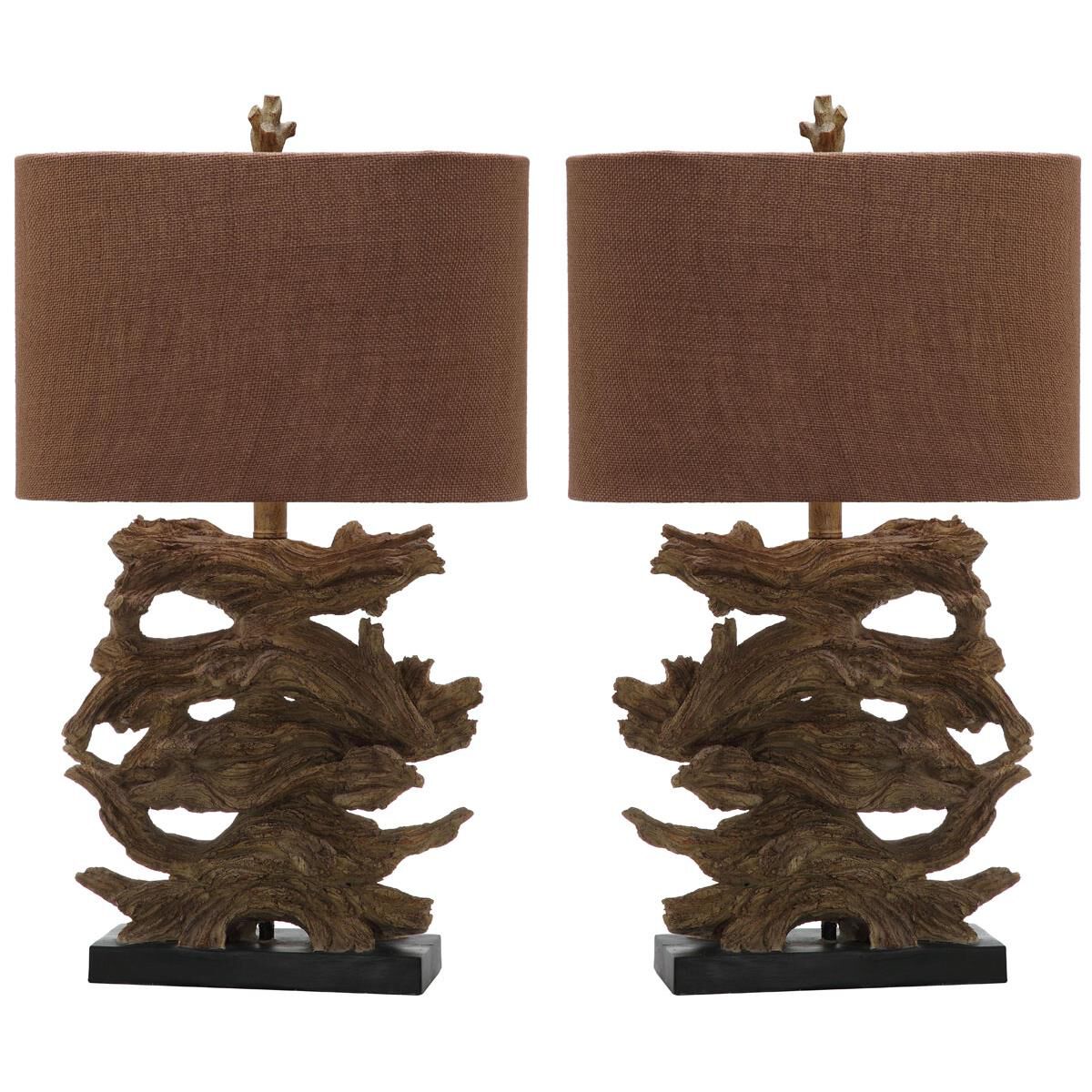 SAFAVIEH Lighting Collection Forester Rustic Farmhouse Brown 27-inch Bedroom Living Room Home Office Desk Nightstand Table Lamp Set of 2 (LED Bulbs Included)