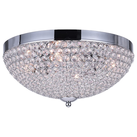 - Make your interiors look and feel expensive by adding the Globe 4 Light Flush Mount Chandelier. It features a bowl shaped frame covered in crystals that refract light from four bulbs that sit inside. When turned on, this light fixture delivers a prismatic glow that you will absolutely love.