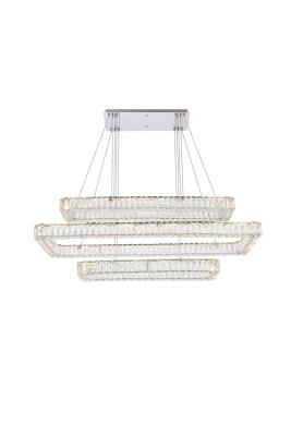 Elegant Lighting Indoor Modern Home Decorative Monroe 50 inch LED Triple Rectangle Pendant - Chrome