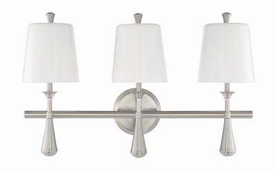 Craftmade Palmer 3 Light Vanity with Frosted Opal Glass Shades, Brushed Polished Nickel, Damp Rated, 57403-BNK