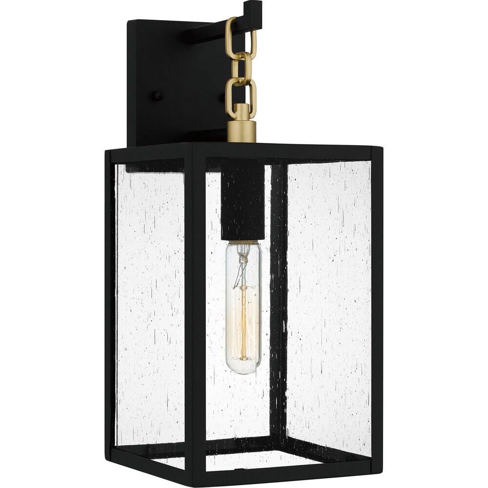 Inspired by jewelry, simplified lines and mixed metals give Anchorage wall lanterns an elegant feel. A sleek matte black frame pairs with clear seedy glass panels for a beautiful contrast, while a gold chain detail adds a hint of modern shine. Flank your front door with a pair of Anchorage sconces - or light up your porch or backyard to create the perfect setting for outdoor entertainment. As part of our Coastal Armour collection, this product is durable, marine grade, and comes with a 5-year limited warranty. 16.00" H 7.25" W 8.25" L / Bulb Type MED BASE A19 / Bulb Qty 1 / Base Finish MBK - Matte Black / Item Weight 8.60 / BP Height In 5.50, BP Width In 4.50 / Product Design Style: Modern / Product Shade: Clear Seedy Glass / Product Warranty: Product Warranty: Indoor Lighting Fixtures-Electrical Components [1 Year], Integrated LED (LED Bulbs Excluded)[5 Years], Finish[1 Year]; Outdoor Lighting Fixtures-Electrical Wiring & Sockets [1 Year], Integrated LED (LED Bulbs Excluded)[5 Years], "Armour" Finish[5 Years], Finish[2 Years].