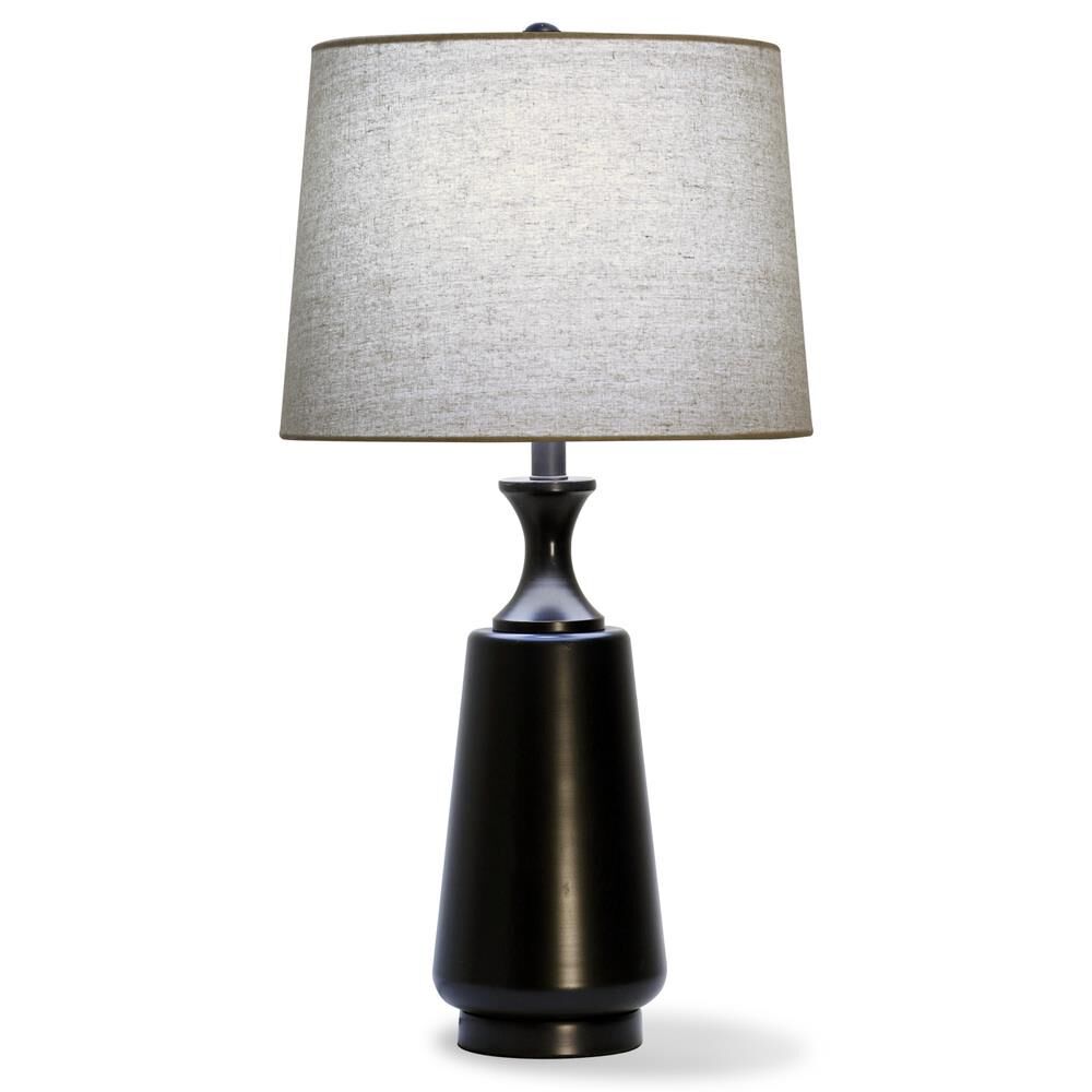This metal table lamp is operated with a simple touch, so it's a convenient addition to a hallway, office, or bedroom. The steel frame has an oil rubbed bronze finish that stands out against the beige color of the linen shade. The finial at the top matches the frame, making this lamp a beautiful option for a side table or desk.