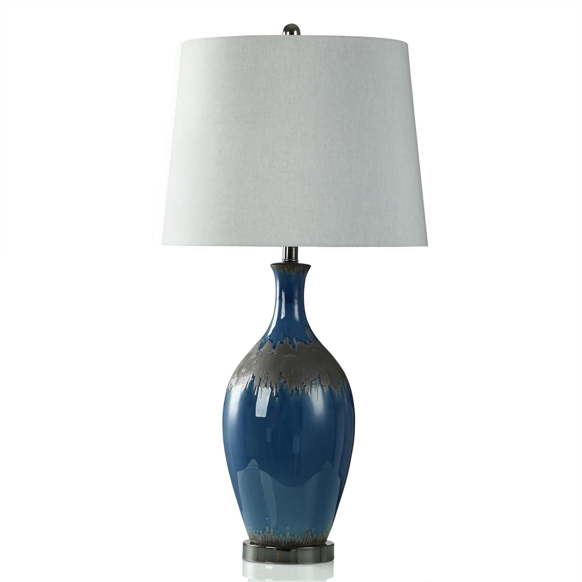 Collective Design Bowie Blue - Table Lamp - Two Tone Matte Black and Navy Glaze Base - 8.75" w X 8.75" d X 35" h