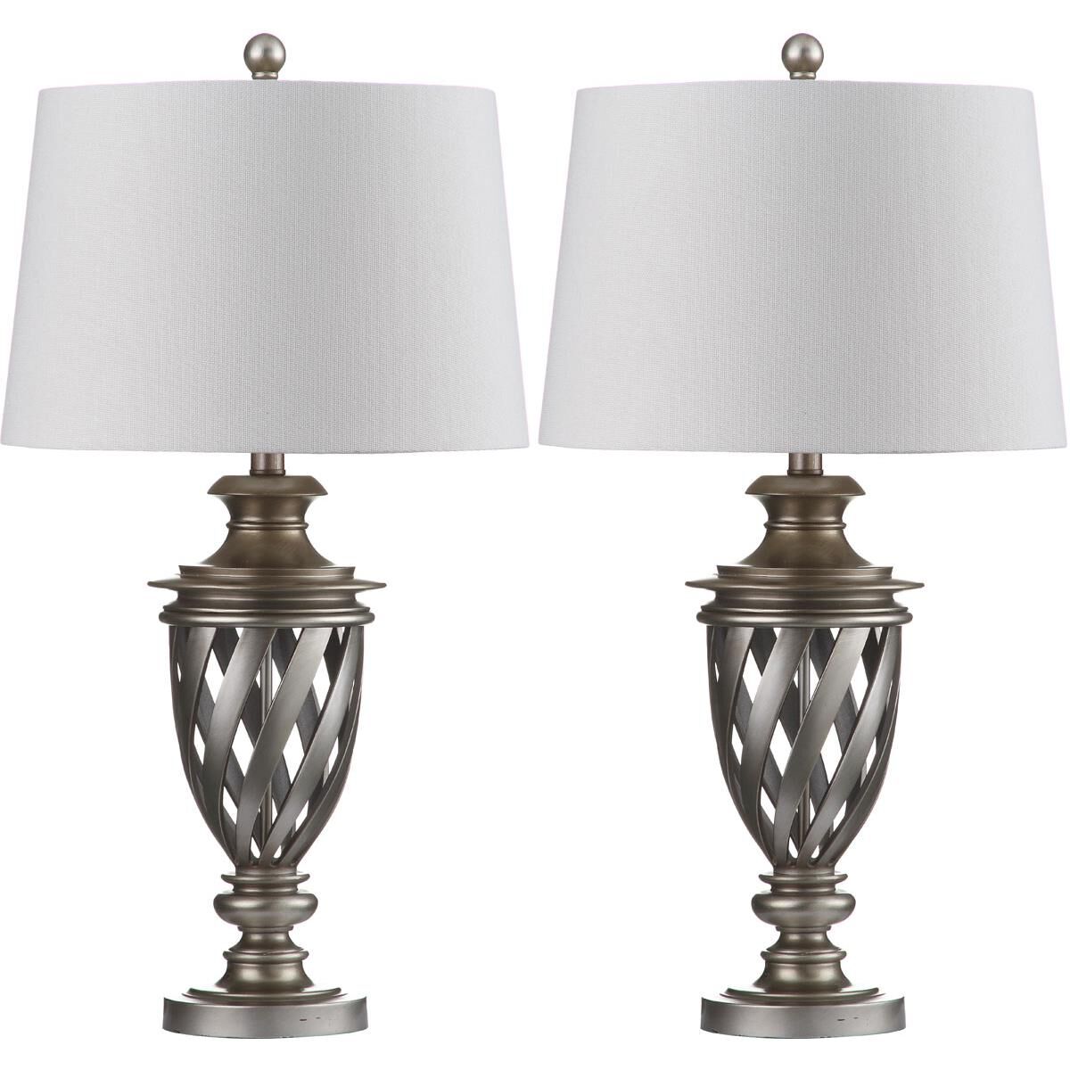 SAFAVIEH Lighting Collection Byron Farmhouse Urn Antique Silver 29-inch Bedroom Living Room Home Office Desk Nightstand Table Lamp Set of 2 (LED Bulbs Included)