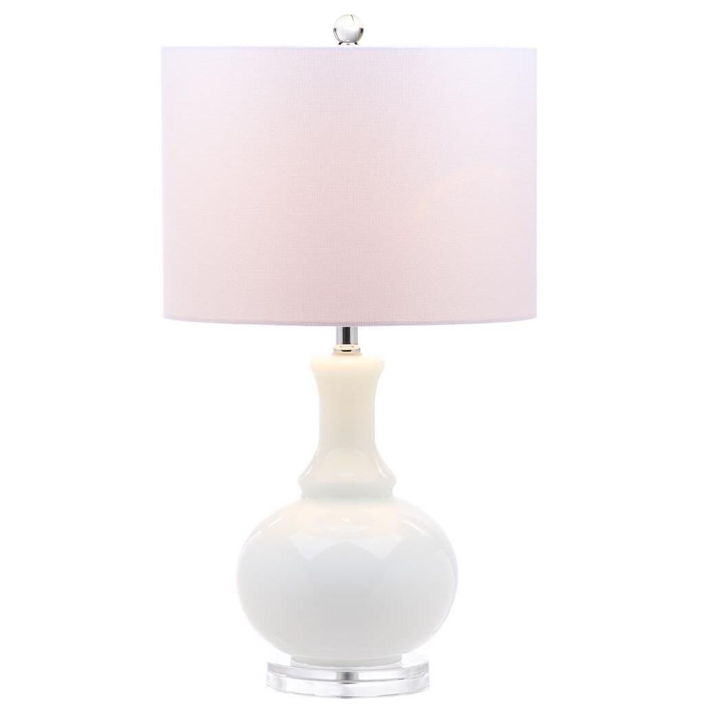 SAFAVIEH Lighting Collection Franny Modern Contemporary White Glass 28-inch Bedroom Living Room Home Office Desk Nightstand Table Lamp Set of 2 (LED Bulbs Included)