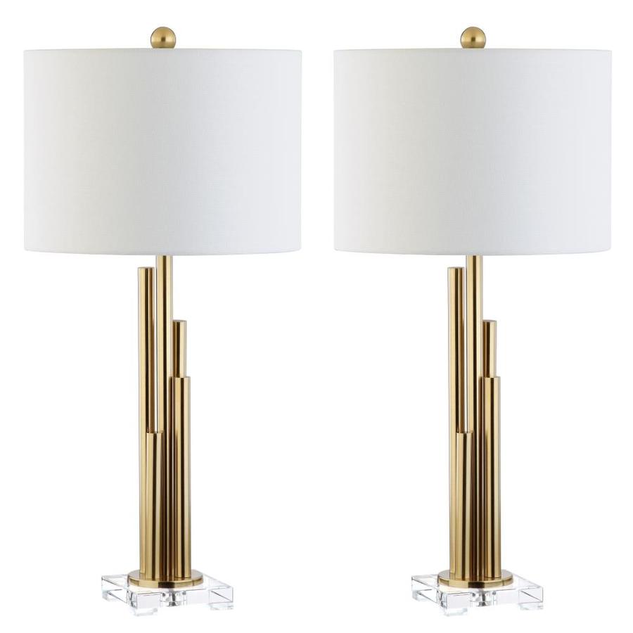 SAFAVIEH Lighting Collection Hopper Brass Gold 30-inch Bedroom Living Room Home Office Desk Nightstand Table Lamp Set of 2 (LED Bulbs Included)