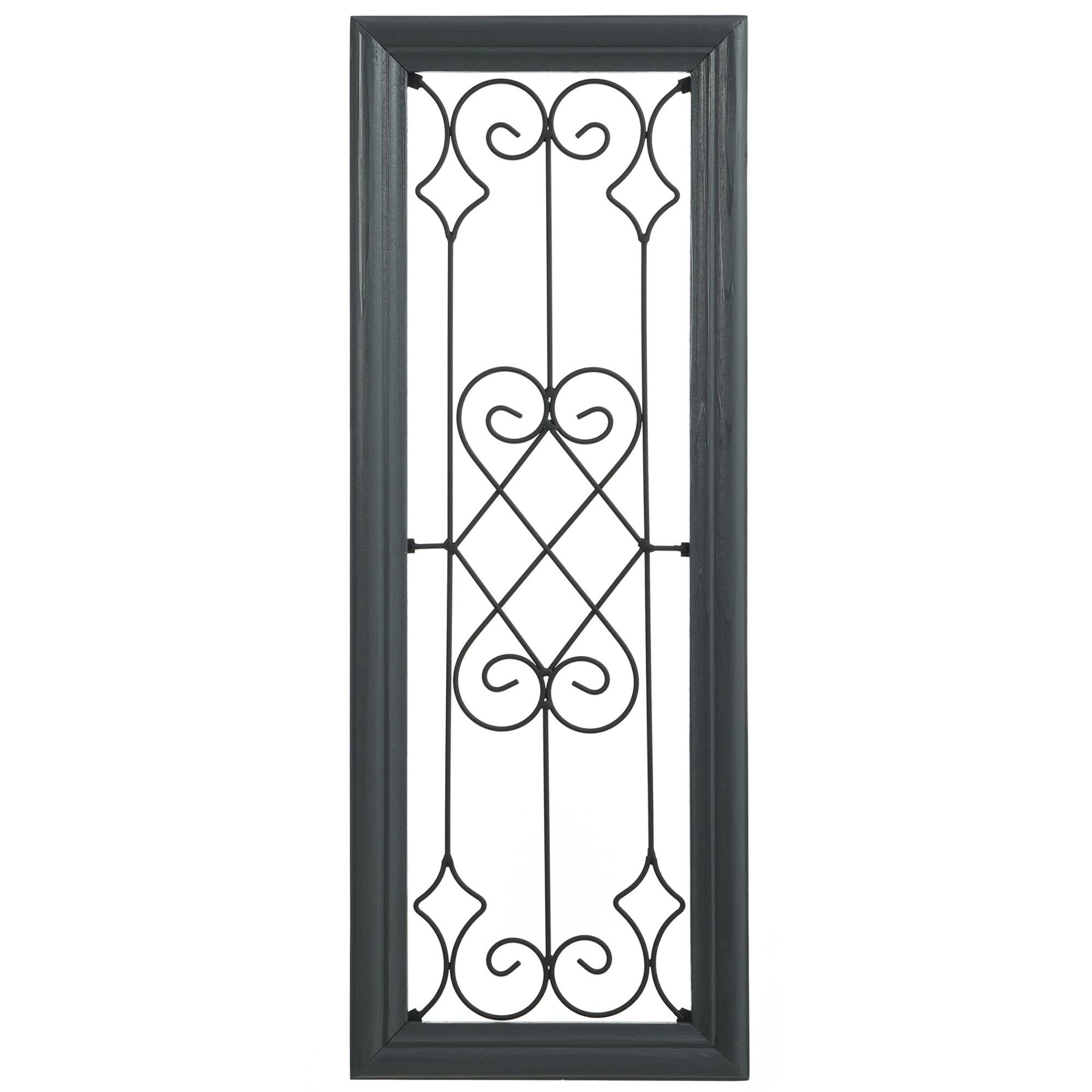 Iron Design Wood Framed Wall Art Window Pane With Metal 33In Ht. X 12In W. X 1In D.FeaturesDue To The Production Process, Each Piece Is Unique And No Two Are Exactly Alike.This alternative wall art has a modern farmhouse style with the matte grey wood veneer and the black iron finishes.Inside the frame of the piece has a wrought iron design that emphasizes the window-like look.Collection: Iron Design Material: Metal, Wood Color: Black, Dark Grey Product Size: 1 x 12 x 33 Frame Color: Black/Brushed Matte Frame Material: Wood Wall Art Color: Black and Dark Grey Wall Decor Shape: Rectangle Required Assembly: No Made In China