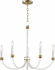 A lovely candelabra style collection with rich accents. This seemingly simple chandelier highlights classically curving accents in a stately combination of Black with Antique Brass accents or chic Weathered White with Gold Leaf accents. Taking a streamlined approach to the archetypal chandelier form, this series updates uses squared tubing to subtly modernize an approachable design with exposed candelabra lighting.