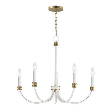 Maxim 11375WWTGL Charlton Chandelier, 5-Light 300 Total Watts, Weathered White / Gold Leaf