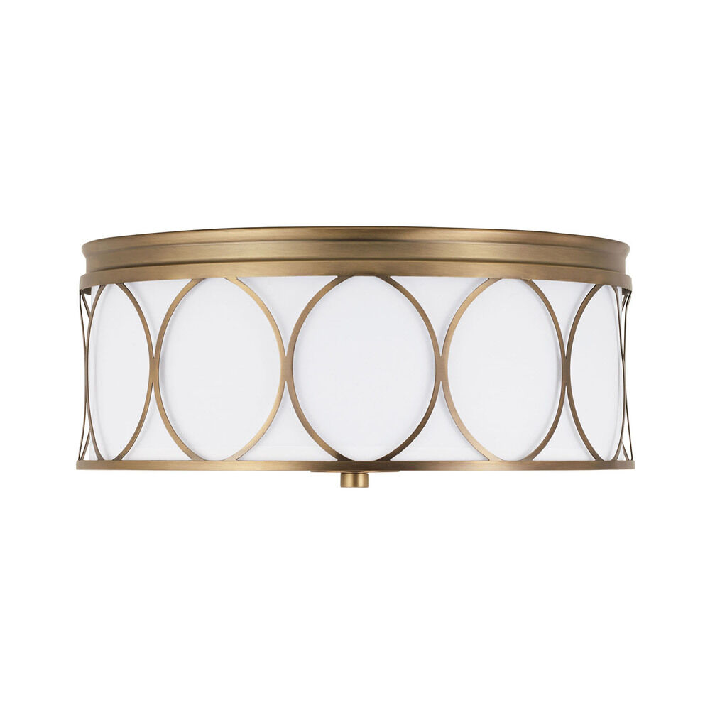 Capital Lighting 225131AD-683 Rylann Mid-Century White Fabric Drum Flush Mount Ceiling Light, 3-Light 180 Total Watts, 7" H x 15" W, Aged Brass