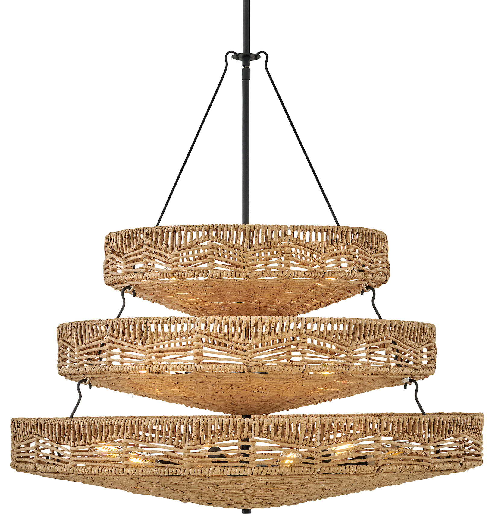 This dazzling design offers striking illumination through a beautiful handwoven pattern. Ophelia radiates with organic elegance as a natural shade adorns a tiered basket frame finished in Black.