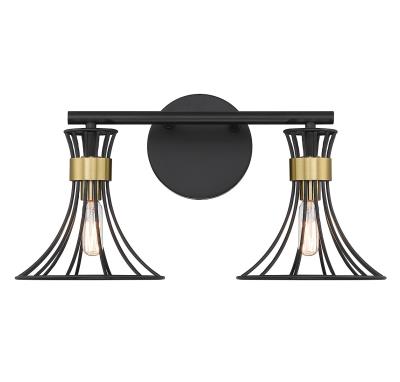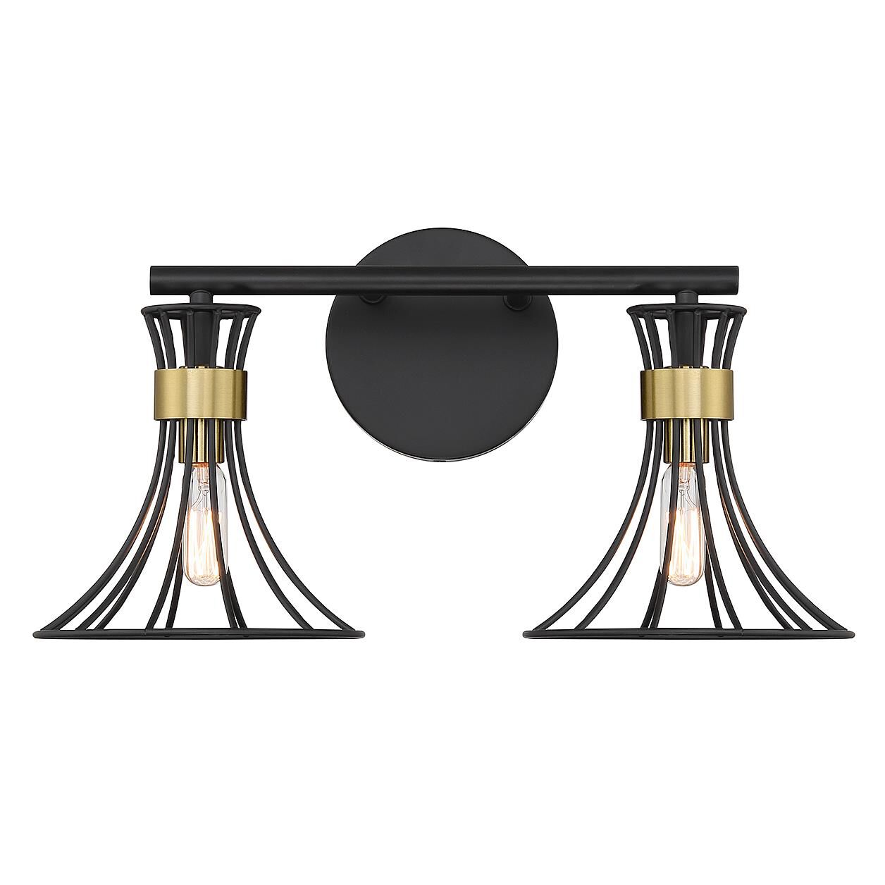 Add a fresh new take on midcentury modern style to any bathroom with this Savoy House Breur 2-light bath vanity light. It features dramatically curved wire frame shades finished in matte black and accented with warm brass collar details. Breur is 17.25" in width, 10.25" in height and extends 7.50" from the wall. It uses 2 candelabra size bulbs of up to 60 watts per bulb (bulbs not included).