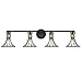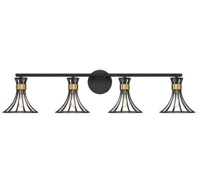 Add a fresh new take on midcentury modern style to any bathroom with this Savoy House Breur 4-light bath vanity light. It features dramatically curved wire frame shades finished in matte black and accented with warm brass collar details. Breur is 38" in width, 10.25" in height and extends 7.50" from the wall. It uses 4 candelabra size bulbs of up to 60 watts per bulb (bulbs not included).
