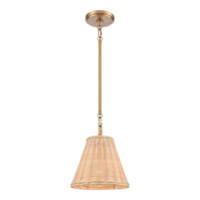 Elk Home 9-inch Rydell Mini Pendant - EC89755/1 Mini Pendant in Natural Rattan and Brushed Gold - LED Bulb and Dimmer Compatiable, Coastal and Nature Inspired/Organic Décor Ceiling Light Fixture