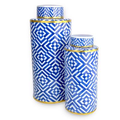 Blue & White Optical Tea Jar Set of 2 : 1200-0751 | Brechers Lighting