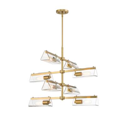 Latitude 28.5 in. 8-Light Brushed Gold Modern Chandelier with Clear Glass Shades : D279M-8CH-BG | Brechers Lighting