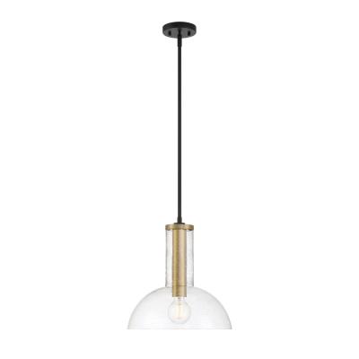 - Modern pendant in Matte Black with a Clear Seedy Glass shade