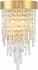 The Winfield collection's artful elegance and inspiring beauty make a sophisticated statement to an interior. This exquisite collection showcases square and rectangular multi-faceted cut crystal strands gracefully hanging from its metal frame. These mesmerizing crystals sparkle and reflect light, creating a dazzling display that captures attention and adds a touch of opulence to any space. Whether illuminated or not, its eye-catching presence becomes a focal point in any room. Winfield collection features a versatile transitional design. / A marriage of traditional and contemporary equate a classic and timeless design that focuses on simplicity and sophistication. / Each crystal strand is uniquely dressed with multiple sized crystal jewels. / Antique Gold metal finish is a popular choice with homeowners. The finish has a rich color and texture with warm undertones. / 9.75"W x 17"H x 5.75"D / 2 light 60- watt, E12 Candelabra base / Steel + Glass / Authorized for use in damp, high-humidity interior locations or protected exterior locations. Meets United States UL Underwriters Laboratories Product Safety Standards / The thick simple metal frame of the Winfield is dramatically dressed with a cascade of crystals..