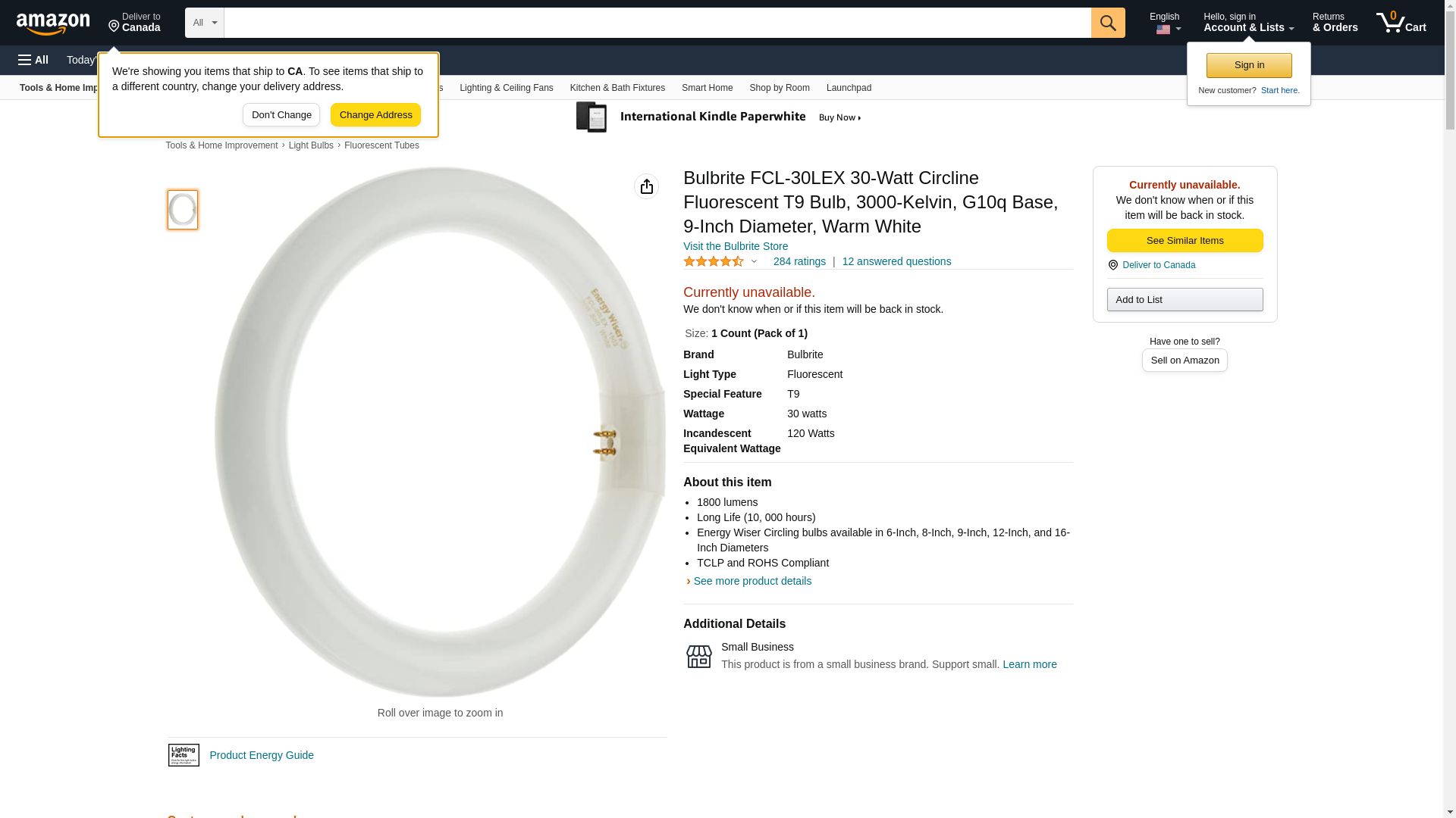Bulbrite FCL-30LEX 30-Watt Circline Fluorescent T9 Bulb, 3000-Kelvin, G10q Base, 9-Inch Diameter, Warm White