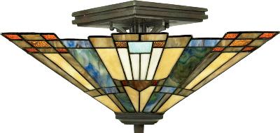 Quoizel TFIK1714VA Inglenook Tiffany Semi-Flush Ceiling Lighting, 2-Light, 120 Watts, Valiant Bronze (8" H x 14" W)